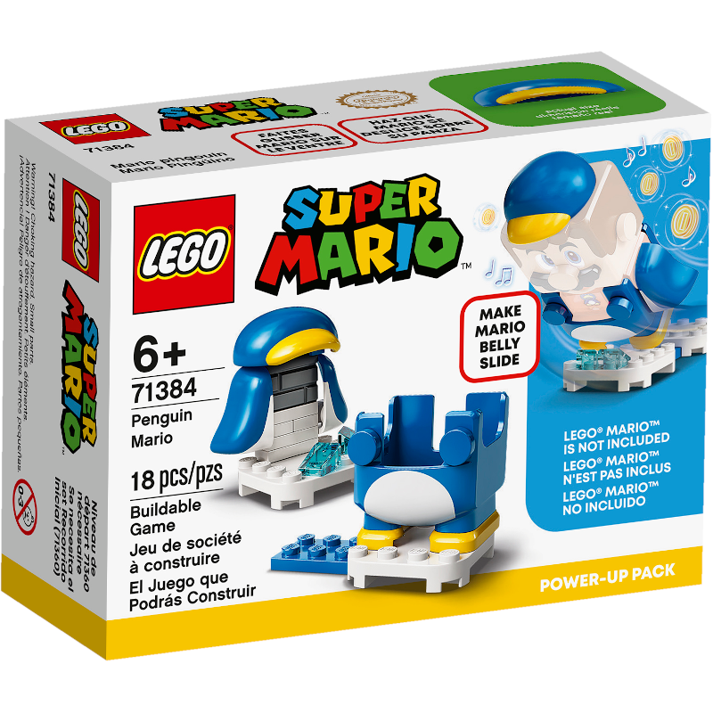 - Bring belly-sliding fun to LEGO® Super Mario™ fans’ play experience with this Penguin Mario Power-Up Pack (71384), featuring an interactive suit for LEGO® Mario™ (figure not included).